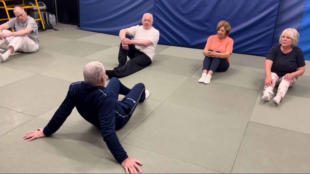 Jim Feenan explained, “The programme supports older individuals, with 12 participants currently involved. Many of these participants face various challenges. We’re helping participants become more comfortable moving around, correcting their posture, and improving stability while walking. A key focus is getting them onto the ground and teaching them how to fall safely—forward and backward.” This approach not only enhances their mobility but also addresses the common fear of falling.